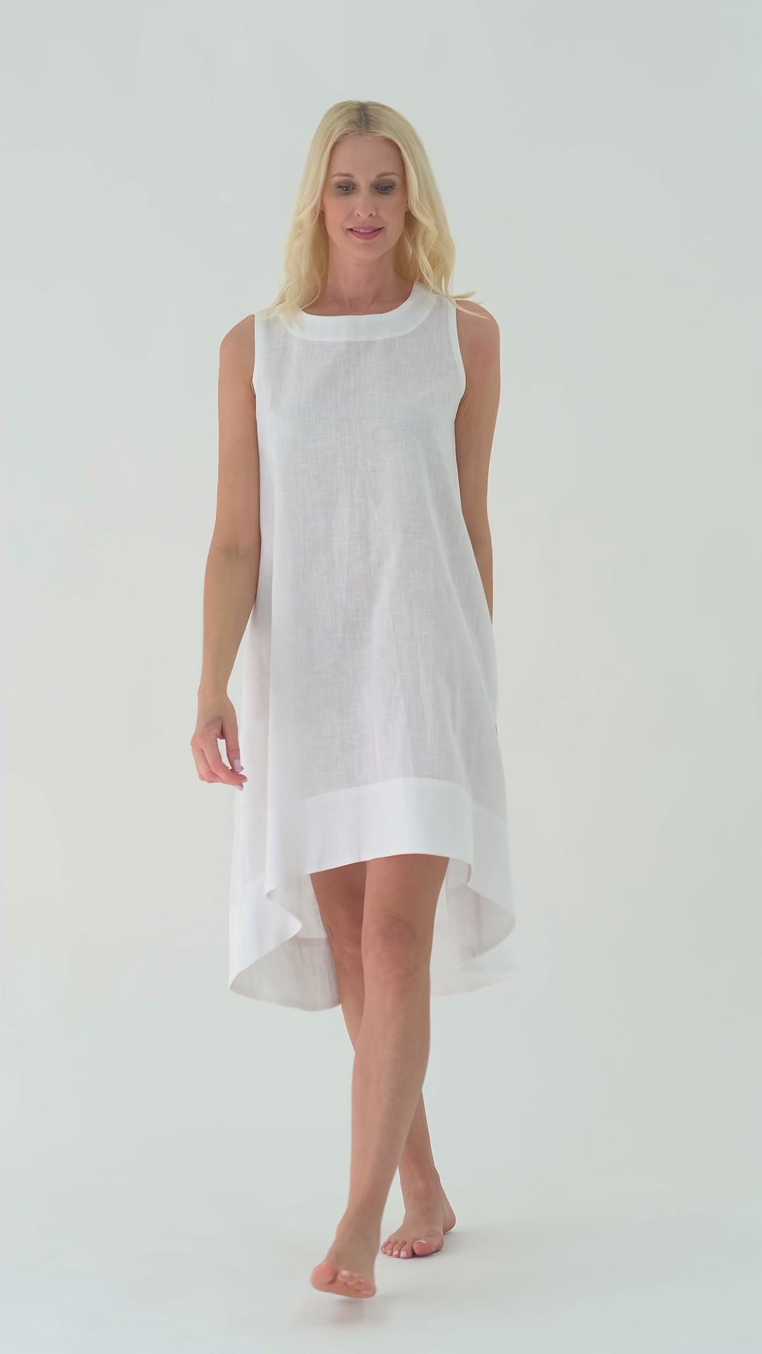 Introducing the Illya Linen Dress, a pure embodiment of effortless style. With its relaxed, oversized silhouette and asymmetrical high-low hemline, this sleeveless linen dress exudes modern charm while offering comfort for long days and casual outings alike. Complete with side pockets and a self-tie closure at the back, it seamlessly combines functionality with a polished aesthetic. Effortlessly chic and perfect for any occasion, this dress is sure to become a wardrobe staple for all your adventures.
