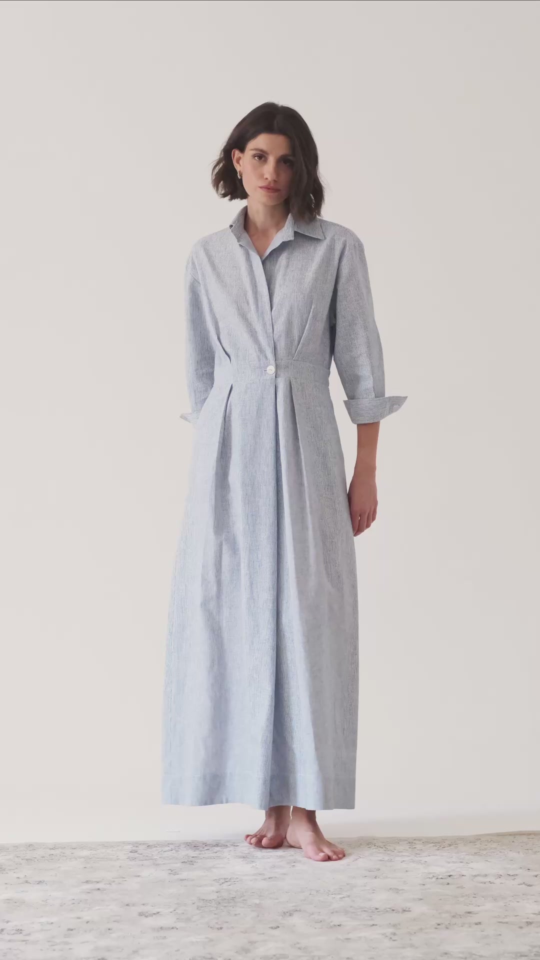 Introducing the Halvar Maxi Linen Dress - the perfect work to occasion dressing. With a sophisticated collar, 3/4 sleeves, and complex wrap construct, this dress strikes the ideal balance between conservative appeal and distinctive design. Crafted from premium certified European linen, it offers a luxurious feel, making it a versatile choice for both workwear and special occasions.